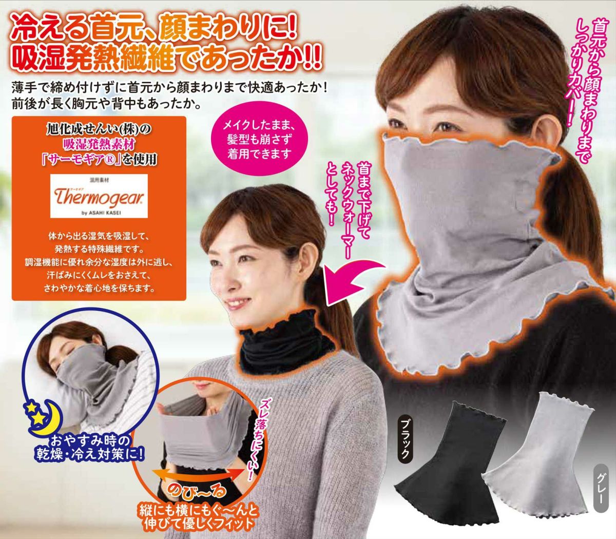 他の画像を見る 冷える首元から顔まわりに!吸湿発熱繊維であったか!! 吸湿発熱繊維のびのびフェイスマスク NEW 通常価格 ¥ 2,640 のところ ¥ 2,640 税込 カートに入れる お気に入りに登録する